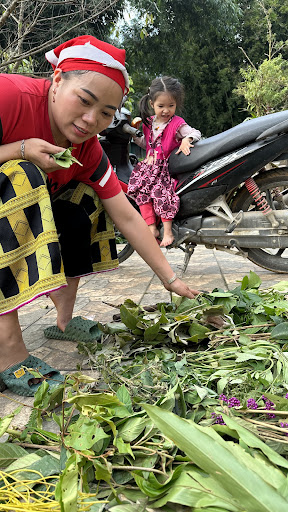 I stayed with May and her family in July. It was quite quiet at the time (heavy rains had caused landslides in the area) but as a solo traveller, I felt incredibly welcomed by May, her adorable daughter Moon, her Mum and I got to meet her 102 year old grandmother, who is still making beautiful embroidery! The homestay is basic, but May's food is unbelievably delicious and the linens were the softest I had in Vietnam. I got to try many veggies and plants that I had never seen before, cooked to perfection, and May was able to explain what they were. Her breakfast pho is the best!! Her English is fantastic and she is wonderful to chat to about Dao culture. I probably asked wayyy too many questions, but May also went above and beyond. I had seen the review about Herbal medicine, which I am interested in, and decided to stay because of the mentions of the Dao baths. The main community Dao bath spa is next to May's and she and her mum explained how it was created by the community and hires locals to collect all the herbs- I think about 160 families benefit from the community spa which can prep herbal baths for 40 people at a time. Her mum also taught me how to sew the traditional Dao cross stitch and then made up 2 bracelets for me from my stitching. The Dao cross stitch from the back, which is incredibly detailed and they used a lot of patience in teaching...