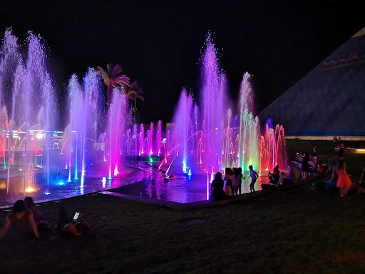 A beautiful light show that involve a fountain and music that is selected through a playlist. The water fountain moves alongside the music. You can find sitting on the grass around the fountains and on podiums in front of the fountain. There is also some activities during the day times you can look at the city website for more information about this.