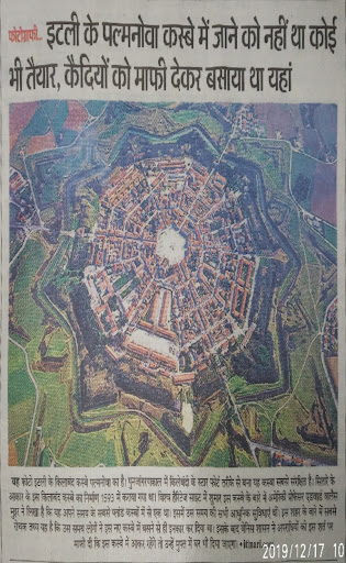 (I wrote an article about Palmanova inside the Dainik Bhaskar Newspaper of India on 17 December 2019 and I thought why not share it with everyone.)