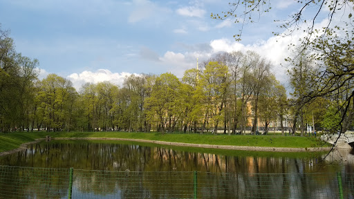 Неплохой парк для небольших прогулок. Находится в низине, поэтому шум от дорог не беспокоит. К сожалению не все дорожки в хорошем состоянии. Радует разнообразие флоры, деревья взрослые и не больные, нет обилия лотков, только пару на центральном входе. Из минусов, это постоянная сцена для мероприятий с ограждениями для загона составленными в самом парке на зеленой зоне. Канал неплохо было бы профилактически чистить, порой запахи не очень. Куча разных скамеек от спонсоров смотрится по колхозному, а биотуалет рядом за профметаллов, который еще и жутко воняет вообще кошмар. Намешало бы и продолжить благоустройство и вглубь парка, до Громова, а то так там только вытоптанная тропа.