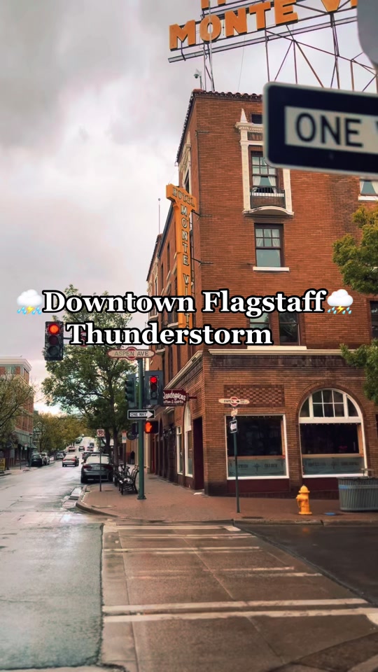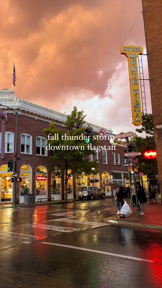 Only in Flagstaff 🍂🌧️ #downtownflagstaff #flagstaffarizona #northernarizonauniversity #thunderstorm #rainstorm