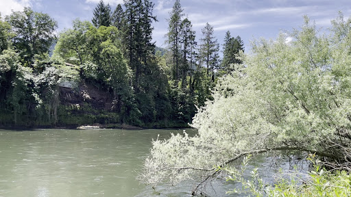 Great place to go either alone, with friends, or with children. The playground is pretty large, with a lot of features, such as slides, climbing things, a spinny thing, a Jeep thing, swings, and so on. There are quite a few tables and benches if you want to just chill, and there is also a water playground that they put in about a year (more or less) ago. The river is very close to the playground, which is a nice sight to look at. There's also a big field for playing frisbee or fetch with your dog. You might also come across a public event here. Probably my favorite park in Grants Pass.