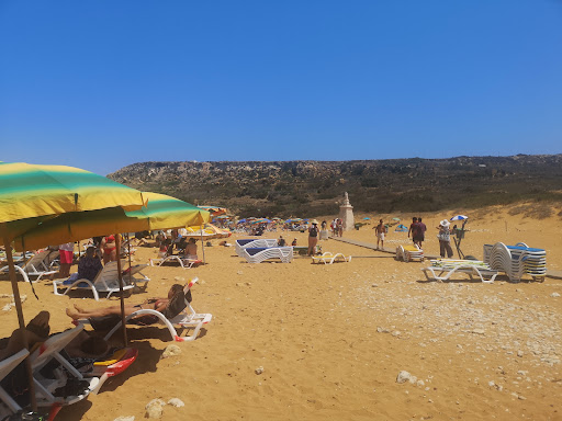 A TripAdvisor recommendation and a Google maps verifier, due to the satellite image showing red sand. The sand is enjoyable to walk (or draw) on and the sea is generally warm however slightly wavy. The beach was near empty in mid November. Regardless of the waves, it was a pleasant surprise to come to the beach without a trace of wind while the rest of our stay was windy. There are no showers on board and the 2 bars nearby weren't open at this time of year. The beach is bordered by buoys from the sea and even though it is a very open beach it seems safe and peaceful. the lonely beautiful beach was splendid, having a small stream entering the sea at it and generally giving peaceful and rehabilitating views. In the near surroundings of the beach there are cactus fields with charming fruits. Olives are also produced in the micro region. And its just a 15 to 20 minute ride to Gozo's capital. On the way back you can also visit the Ggantija temples. Definitely would recommend the beach, while its low season at least.