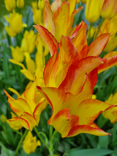 Вернусь к описанию и рекламе из интернета -" у нас расцвели сады сакуры, раньше на 4 недели..", далее призывы понаблюдать за этой красотой. По факту, два дерева.. Возле них толпа людей, желающих сделать фото, прошли мимо. Очень много тюльпанов, горы тюльпанов, аллеи тюльпанов. Куда более интересен уголок с хвойными деревьями.