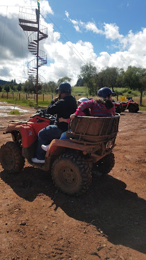 Magnífico lugar varato el acceso y con el ya puedes recorrer el lugar la casacada artificial, la zona de niños muy bien 50 pesos y están todo el día en los brincolines, las tirolesas y el puente muy bien cuidados, tiene restauran bufet por la mañana tienda y todo, lo mejor para mi las cuatrimotos el recorrido si es extremo pero te explican y istrullen todo el tiempo para estar seguro 👍 600 el recurrido de 1 hr o más super recomendado 😉