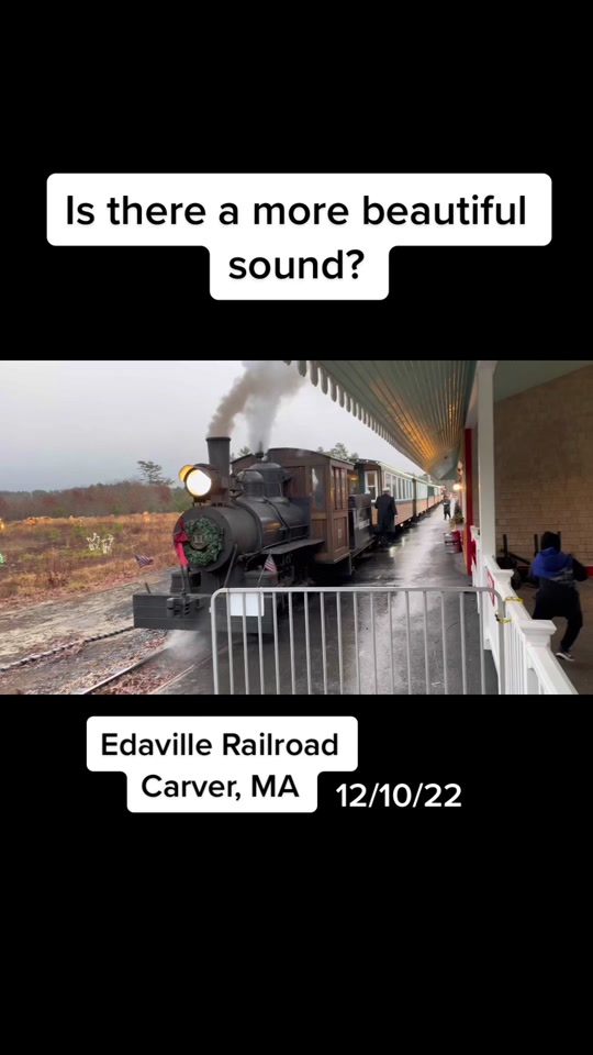 Listen to that whistle blow! Only wish this park was open year round! #edavillerailroad #carverma #steamengine #trains #railfans #steam #railroad #themepark #winter #newengland #sound #fyp #family #fun #adventure