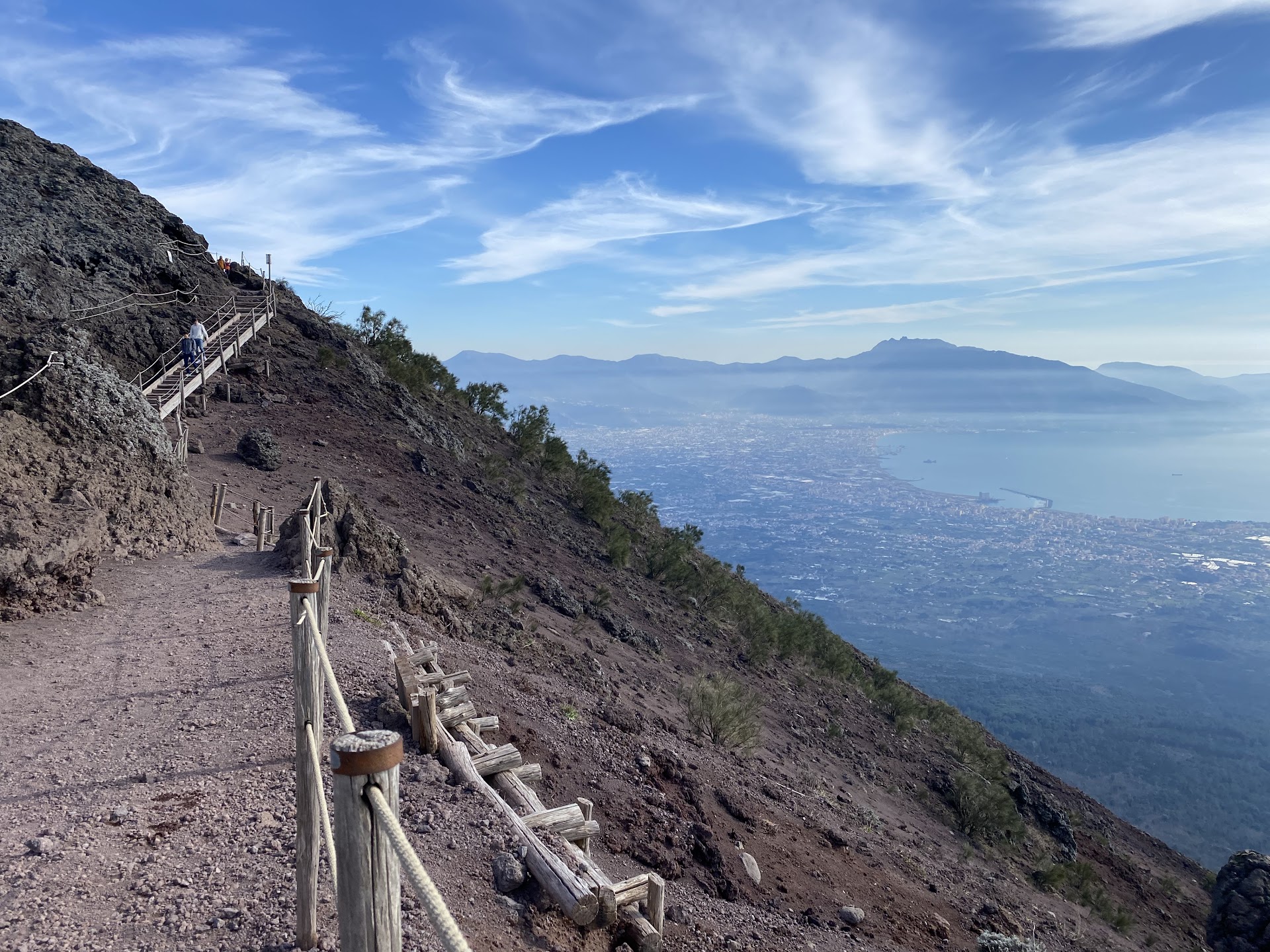 You can make out Pompeii and with binoculars see the amphitheatre. Sorrento, Naples and the whole of the Napoli bay are breathtaking.