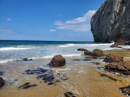 This is a fantastic beach and one of the best i have ever seen. It is my favorite stop in Spain. The cliffs and caves during low tide are Magic. Free parking. Beautiful sand and colour of water. But the caves on the right side are unreal. Go during low tide.