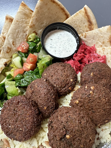 Our Falafel Platters, featured in the photo, were OUTSTANDING!!! The rice pilaf had a nice blend of orzo, the pickled cabbage and peppers added a hit of acidity, the pita were fresh and toasted to perfection, but the star of the dish was truly the falafel. Crispy on the outside, soft on the inside and perfectly seasoned!
