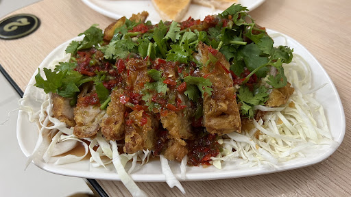 「月亮蝦餅」自製看得見小蝦,「椒麻雞」很優秀不辣反倒蝦餅略輸,但都比連鎖好吃;因店面空間不大,烹調區油炸時會有油煙味(一下子油炸時間,滿桌用餐可能會外帶或烹調完再入座)氣味很在意要自己斟酌,份量價位很不錯👍用餐感受衛生也可以👍會再帶朋友回訪吃其他單點料理,...