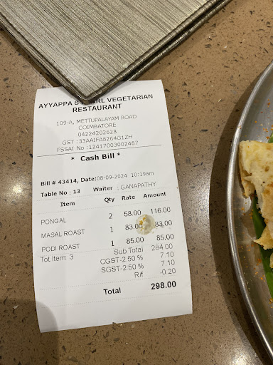 This is one of a top notch vegetarian restaurant you can find in Kavundampalayam. Ayappa Pearl is exactly located in the right centre of the area. The restaurant provides centralised air conditioning with spacious seating and good cleaning maintenance. The restaurant offers varities of dishes in both south indian and north indian cuisine. The purity and the taste they offers is remarkable. I have been eating in this restaurant for the past 9-10 years, I can assure you that they are providing the same taste all these years. If you're travelling in the Coimbatore - Mettupalayam road, wants to have some Masala Dosa in the evening then this is one of the best that you don't...