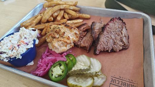 The sides were a mixed bag. The fries and mac 'n' cheese were good, but the coleslaw had a strange aftertaste, and the potato salad was excessively wet and lacked flavor. The meat plates also came with pickles, fresh jalapenos, and pickled onions. While the pickles and jalapenos were fine, the pickled red onions were surprisingly bland.