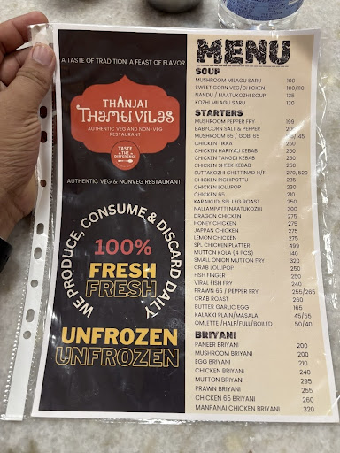 Read moreA total waste of money! We as a group stepped in to Thanjai Thambi Vilas based on a few Thanjai friends' recommendation and decided to order Asaiva virundhu priced at Rs399 per plate. Sadly none of the 7 folks who ordered the meals finished (not even talking about satisfaction here) The fare was so so so average and a complete disappointment. Though we were wary of Thambi Vilas' reputation in Chennai and their subsequent closure, we still decided to skip Pattukottai Kamatchi mess thinking they won't let us down at Thanjai. A colossal waste of food and around 3000 rupees which could have been put to better use!
