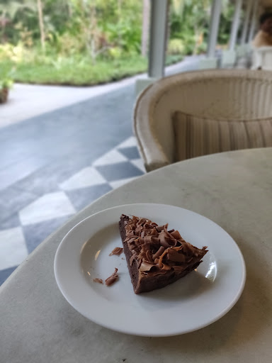 The place has an old world charm to it. The whole black and white checkered floor, the huge French doors, the high ceiling, the classy Chintz sofas, the iron wrought chairs all together has an 50s charm to it. The tiny black tiles counter with dessert chiller always cheers me up. The portraits on the wall are beautiful. The chiller always filled to the brim with dark and sinful chocolate-y delicacies, varieties of Cheese cakes, banana walnut cake, tarts and mousse is such a treat to the eye. The black tiled pantry - beautiful.