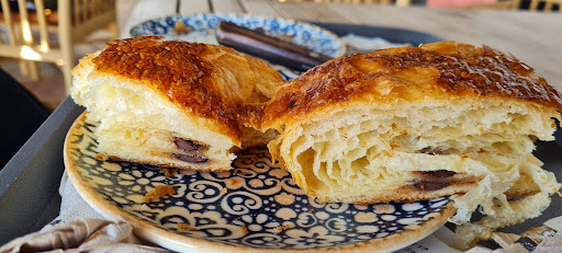 Quisimos pedir algo más y fui a preguntar a una de las chicas. Me recomendó el pan de chocolate, le pregunté, "¿lleva pepitas de chocolate?" y me dijo "lleva dos tablas de chocolate por dentro, está muy bueno, la verdad" y yo si escucho eso pienso, "vale pues tiene dos tablas por dentro y está muy bueno, pues sabrá a chocolate". Me lo llevé a la mesa, lo corté por la mitad y de verdad que ya me pareció hasta cutre la cantidad que había de chocolate. La chica que me lo recomendó, seguro que lo hizo con buenísima intención pero de verdad, es que siento ser tan sincera, es muy muy muy cutre que pongan esa cantidad.