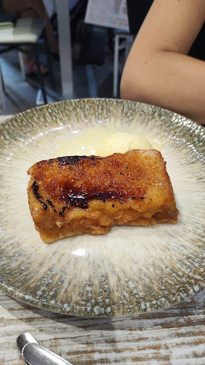 We had great, friendly and efficient service and excellent food. We were a large group (30 people) and the restaurant was packed with other groups at the same time. The waitstaff and the owner made sure we had everything we needed at all times and were happy to give us their recommendations and answer all our questions about the menu. The menu included several Spanish dishes as well as salads and burgers. There was something for everyone and it definitely did not feel like those typical touristy places you’ll find downtown. The dishes were great sizes and flavorful. The atmosphere was also just what we were searching for: a nice, family restaurant where locals go to enjoy a meal with their friends and family on the weekend. My recommendation: it’s worth venturing out from downtown Madrid to eat here, and don’t skip dessert (order a few different ones...