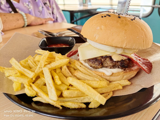 The fries with the burger arrived cold and undercooked, the patty of the burger was bad quality and I would have appreciated the bread to be toasted.