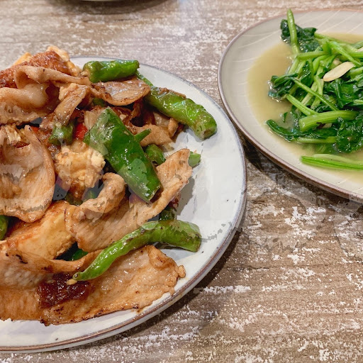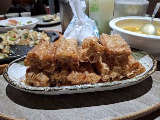 這次點了10幾道菜,不誇張幾乎全是招牌菜,口味做得都很道地,有老油條、豆酥扁鱈、花椒烘蛋、椒鹽肥腸、青龍松阪肉、金沙海大蝦、南瓜豆腐煲、XO醬鐵板鮮蚵、客家小炒、黃金蛋黃蝦、南乳控肉、清蒸牛肉、XO醬炒飯、蝦仁炒飯和宮保高麗菜 老油條裡面包著魚漿,裡頭還有蝦仁塊,吃起來外層酥脆,內餡鮮香,是一道費工的招牌菜,建議大家必點!!! 豆酥扁鱈的魚肉被熱油淋過之後口感變得很細緻軟綿,油亮油亮的樣子讓人一吃就愛上! 花椒烘蛋的花椒醬汁淋在荷包蛋上,一口蛋一口肉末吃起來香香麻麻的很下飯 椒鹽肥腸的肥腸炸得非常酥脆像餅乾一樣,跟洋蔥花椒等辛香料一起爆炒,吃起來乾爽不油膩,適合配飯也適合配酒的一道料理 青龍松阪肉吃起來蠻Q彈的,跟青龍辣椒一起炒口味還不錯~ 金沙海大蝦外層裹著厚厚的鹹蛋黃再下鍋油炸,酥脆口感帶著濃郁鹹香風味,推薦必點!!! 南瓜豆腐煲喝起來蠻順口的,豆腐軟嫩、蝦肉彈牙,適合單吃也適合配飯 XO醬鐵板鮮蚵屬於口味比較重的一道菜,新鮮的鮮蚵跟洋蔥辣椒青蔥等辛香料一起爆炒,醬香味道濃郁配飯可以吃好幾碗 客家小炒先將豆干、乾魷魚等等食材煸香,再加入青蔥增加色澤度,味道鹹香,油亮油亮的樣子很誘人 黃金蛋黃蝦相比前面的金沙海大蝦,它金沙的濕潤度比較夠,吃起來鹹蛋黃的風味比較淡,蝦仁也偏向比較軟嫩的那種 南乳控肉裡頭的控肉和芋頭都燉得很軟綿,再淋上特製的醬汁去融合兩者的味道,口味蠻特別的大家可以點來嚐鮮看看 清蒸牛肉用的是帶筋的牛腱肉,口感軟嫩口味偏清淡,新鮮的牛肉用最簡單的做法呈現他的原汁原味 炒飯點了蝦仁和XO醬口味的,大火快炒的炒飯口感很蓬鬆,鑊氣讓裡頭的配料融合在一起,簡單調味就可以上桌,是很家常的口味 宮保高麗菜先將高麗菜炒出水份後再加入乾辣椒,高麗菜保有脆甜口感...