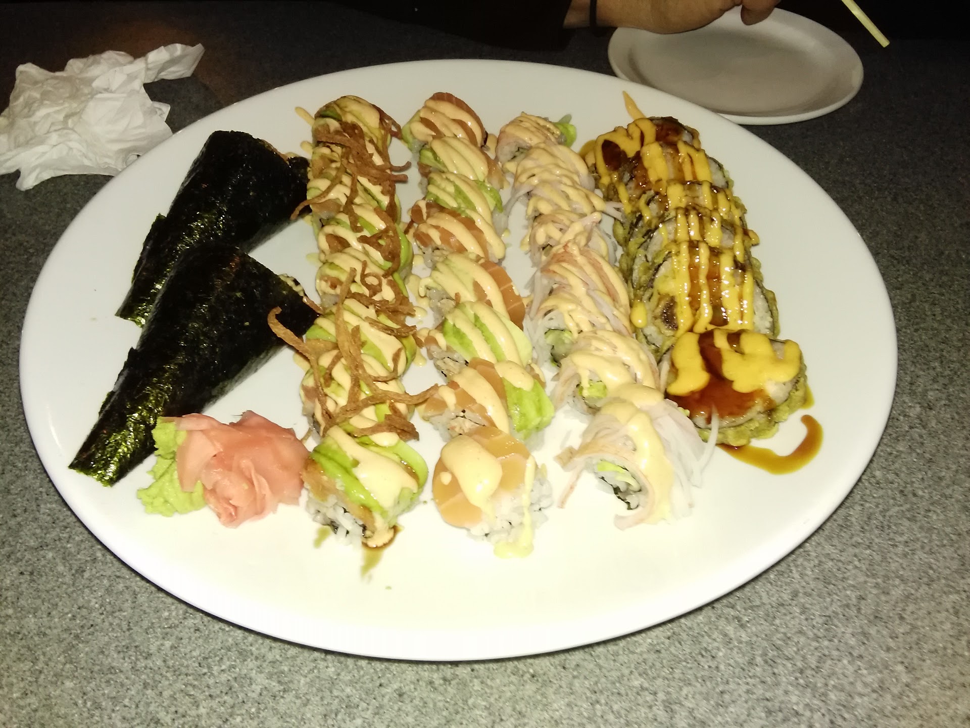 Read moreGood sushi from landlocked Indiana? You really have to compare it to what is possible for a place like this, and when you do, it's pretty good. You're not going to find fish like you would in California or even Chicago where they can get fresh fish daily. But they work with what they have and they make it pretty tasty. Rolls cost around 4 dollars for normal ones and 6-8 dollars for their specialty ones. It's on the cheaper side of sushi places in Bloomington I beleive. I would recommend trying at least one of the specialty rolls to see their creativity. The Sun roll, Dragon roll, and Spider roll are all really good. Service is decent. Sometimes it feels like they rush you when ordering, but I've never been treated badly. Due to it's price and proximity, it seems to be a popular place for sororities. Sake bombs can get pretty loud and obnoxious quickly. Aside from that, decor and atmosphere is nice. They have 3 rooms in the back that can be used for parties and fit about 10 people, more if you're creative. It would be a good place to try and it's my go...
