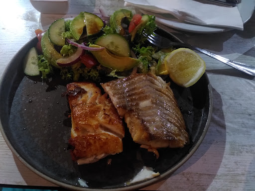 The staff were lovely and friendly and the food came quickly and was beautifully presented. We also got little pots of olive oil and vinegar to put on it and they were good quality and just the right size for my salad (which was bigger and yummier than I was expecting - see photo). The fish was delicious - cooked just right with a crispy exterior and flaky inside. Really meaty.