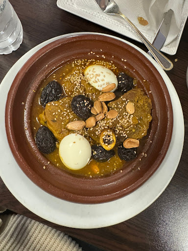 🤮🤮🤮. I am Moroccan Amazigh from Agadir , I was in Düsseldorf for a short visit and I went to this Moroccan restaurant because I missed our Moroccan Amazigh tajin, I ordered 1 Moroccan Agadir tajin, and I really shocked because it was that tajin in that photo, that has nothing to do with Moroccan Agadir tajin , maybe they think that I am not Moroccan and they gave me a tajin with Couscous vegetables. I will explain better instead of cooking tajin with its special vegetables they just take the vegetables that they cooked with couscous yesterday and put it in the top of tajin 🤮🤮 and I think they didn't even cooked a real tajine they only cook in a big plat Vegetables and meat and put it in the tajin and sell it to people 🤮, Anyway don't go there because that has nothing to do with Moroccan food, the service was catastrofe, there was a guy from syria he doesn't know nothing about our food and our culture when I tried to explain to him my reaction he didn't understand nothing, what a shame of them , the Moroccan food won the best in the world but this restaurant unfortunately gives a bad image about our country Tazzzz awdi tazzzz (0/0), go somewhere else but don't go there and if you go don't say that you eat Moroccan food because this is not Moroccan, even the smile you won't get it، I will never go there again tazzzzzzz 👎 🤮🤮