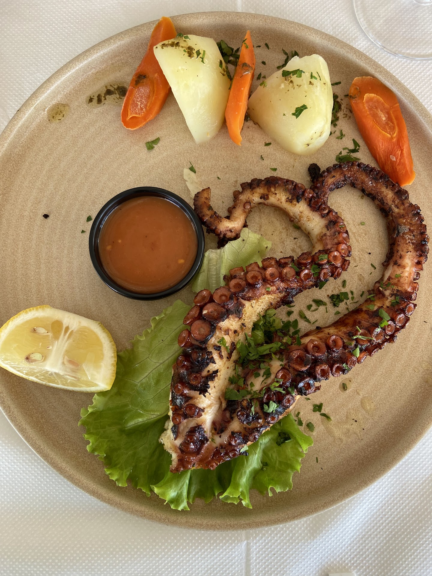 The atmosphere was charming, with a welcoming family-run vibe, and the waiter was attentive and friendly. The stunning sea view made the experience even more special, though the busy street behind did add some noise. Despite that, we would highly recommend this place for anyone looking to enjoy a memorable meal...