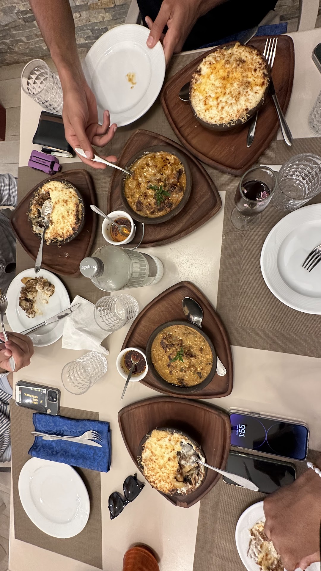 F&B: We started with .5L of white wine, it was very delicious and kept cold in the little carafe they gave. Then for food we ordered Starter veggie balls (like fritters), very lightly fried and came with a nice tzatziki to dip in Ricotta stuffed peppers/tomato, these were SO good. The flavor of the peppers alone was enough to make me say mmhmm! The cheese inside was super flavorful Half portion of the grilled lamb, also incredibly tasty. The lamb was grilled with a nice char and super tender. Very generous portion as well