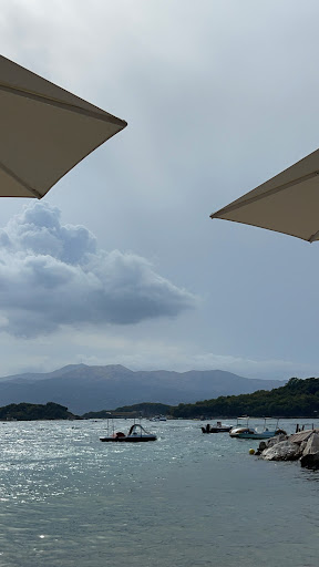 The Beach ⛱️ is absolutely beautiful(it is stones and pebbles(Definitely wear water shoes(Thank us later), The water was crystal clear, The Beach is busy but it is definitely worth visiting, The waiter said If we want drinks just get his attention, We ordered a few drinks throughout the afternoon(Again you can pay cash or card) I had a Bottle of Peja Lager(Kosovan beer) and my Wife had an Aperol Spritz(Definitely recommend you try one)