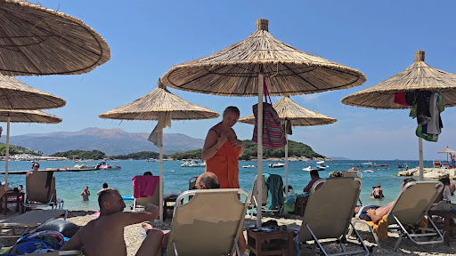 We highly recommend Mango beach bar, Service was fantastic, 2x Sun lounges and a Table for €25(2,500 Lek) all day, Beach is absolutely beautiful, Crystal clear water, Gorgeous weather and a fantastic place to either swim, Snorkel, Water Sports or just sot, relax and unwind with a book or just catch some...