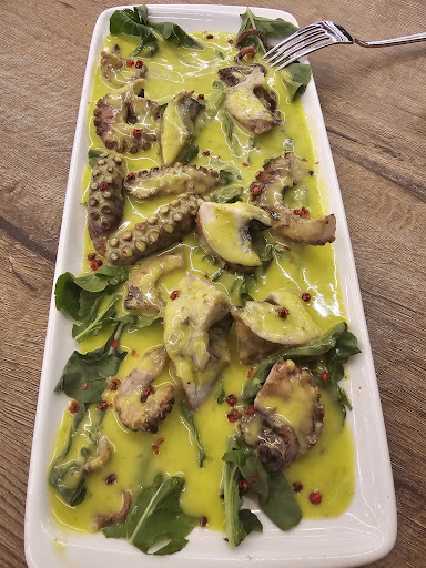 Read moreHeute muss ich eine Bewertung geben, die mir normalerweise widerstrebt. Allerdings muss ich sagen, war es wirklich nicht gut. Der Kellner sprach nur das nötigste, wirkte gestresst und war auch bei der Bestellungsaufnahme sehr ungeduldig. Wir hatten unseren 8 jährigen Sohn dabei und der benötigt in anderen Ländern immer etwas länger bei seiner Gerichtauswahl. Seine Meatballs waren ok. Der Fisch meines Lebensgefährten auch... ich hatte die Spaghetti Meeresfrüchte... die Meeresfrüchte musste ich suchen.... und ich hatte tatsächlich mehr leere Scrimpsköpfe unter den Nudeln, statt Meeresfruchtfleisch. An dem Tag unseres Besuchs regnete es stark. Unser Tisch war dreckig und nass.... da keiner mal auf die Idee kam ihn zu wischen, bin ich dann irgendwann selbst aufgestanden und hab mir Servietten von der Theke geholt um den Tisch zu reinigen. Normal (wenn es nicht so geregnet hätte, wären wir da schon gegangen). Ein Kind fiehl eine erhöhte Abstuffung rückwärts auf den Kopf, dass ganze Lokal erschrak, der Kellner lief gestresst daran vorbei.... und einmal suchte ein Hund etwas Schutz vor dem Unwetter.... ein anderer Kellner lief so schnell auf den armen Hund zu, dass der sich gleich voll klein machte, rückwärts geduckt den Ausgang suchte und sich dabei am Geländer den Kopf anschlug. So reagiert ein Hund nur, wenn er dementsprechende Erfahrumgen gemacht hat. Wir reisen sehr viel und ich sehe oft, Kellner Hunde heraus schicken, geht allerdings auch anders.... die Hunde haben hier kein leichtes Leben und waren alles ausnahmslos, freundlich. Am nächsten Tag lief ich nach dem baden am Resturant vorbei und sah, wie sich zwei arme Streuner verhackt haben. Also einer steckte rückwärts mit dem Hinterbein im verfilzten Fell vom Schwanz des anderen fest. Der eine hatte starke Schmerzen und fiebte, der andere brachte sein Hinterbein gar nicht zu boden und hob mit der Schnauze immer hilflos den Schwanz des anderen hoch. Die beiden Streuner waren in einer Situation, aus der sie ohne Menschenhilfe nicht herauskamen. Also versuchte ich das Bein heraushuziehen. Die Hunde hatten Angst und bewegten sich immer mehr auf die Strasse. Die Autofahrer dort, nehmen auf so etwas leider keine Rücksicht. Steht keine Polizei vor Ort, ist es auch für Kinder sehr gefährlich. Als ich bemerkte das ich dass alleine nicht hinbekomme, fragte ich den Kellner um Hilfe. Es war um die 16 Uhr und das Lokal war fast leer.... er lachte nur und meinte auf übersetzt..... sie haben Pech gehabt.... so ist die Natur! Sorry in allen Lebenssituationen durchgefallen! -10* Weder guter Service noch gutes Essen und von Kinderfreundlichkeit und Tierliebe, reden wir hier...