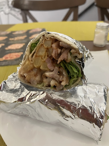 The quality is not always very high, but a shawarma/ gyros wrapped tortilla with a ketchup sauce. Service is uneven from different types of the staff, but not bad as overall. Prices are very reasonable, considering the location and the quality of the food. The atmosphere is homely, and the free Wi-Fi is appreciated by many travellers.