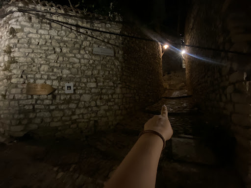 First go to Villa Elmar, which is easy to find on Google maps. Continue up the street until the next right turn (There will be a sign directing you to a Guest House Bujtina). Then go up and look for a steep set of stairs to the left. At this point you will see signs directing you to the ethnographic museum or a restaurant with a veranda. Keep following them all the way up until you come to a split where you can go to the left to a restaurant OR up and through a hotel to tjis specific restaurant. Congratulations, you have arrived! (From someone who was very frustrated by not being able to find this...