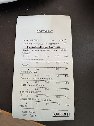 Read moreI had high hopes for this place, but unfortunately, the experience was far from pleasant. The food was mediocre at best, and honestly, even below average. I ordered the cacio e pepe pasta, while my fiancée opted for the risotto with chicken and vegetables. Our meals took an unusually long time to arrive, and when the waiter finally brought my dish, it wasn't even the right one. Instead of the cacio e pepe, I was served tagliatelle with mushrooms, and I was told the cacio e pepe would take "too long" to prepare. This is something that is typically clarified in the beginning so the customer has the option to accept the wait OR choose another dish more fitting to their taste. I went ahead and tried the tagliatelle, but it was disappointing. It was underseasoned, undercooked, and overall bland. I'd rate it a solid 3/10. As for my fiancée’s risotto, it was an absolute letdown. The rice was mushy, and the dish was reminiscent of those pre-packaged, store-bought rice meals, the kind that comes with pre-made sauce and just gets slopped together with little care. There was barely any chicken, and the vegetables were minimal. The portion size was laughably small, more akin to a kid’s meal than something you'd expect at a restaurant. To top it off, the bread they served (four plain, unseasoned slices) wasn't complimentary, despite being brought to the table without us requesting any. We were charged around 160 lek for that. The atmosphere and cleanliness were fine, but the food was an absolute letdown. Honestly, this place was a -200/10 on the food scale, and I won’t be returning...