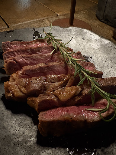 What a delicious meal, and some of the staff members were so upbeat and friendly, I even received a free Raki and hug. Definitely a place I'll be visiting each time I'm in Tirana (and I'll have to make that more often!). Very nice interior and outdoor seating. I can't wait to bring some friends here as this time I ate alone. I chose this place for its 5 star ratings but maybe even more importantly it was within walking distance to my accommodations. I got lucky with that. The ribeye steak was well seasoned and lightly cooked to perfection, very tender and moist with a bit of marbling 🤤 and the Kope roll, I should have ordered more than one! If I lived in Tirana it would be hard not to eat here everyday, but once a week for sure 👍 If you enjoy carne you gotta come here. It may seam pricey for some people, just save up for it as it is well worth it! This is the kind of place that makes one not like other restaurants as it sets the standards too high 😂 how I'll live the rest of my life without eating here daily 🤦♂️ 1st world 21 century struggles are real 😂