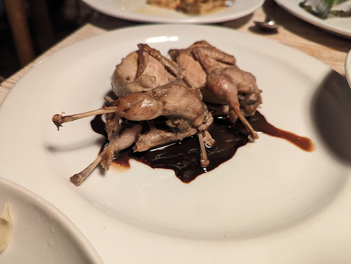 The 6th course cracked us up at this point. The menu said quail with polenta in a plum sauce. However, the waiter informed us that they ran out of quail so now my husband was going to be served baby goat. Not our first choice but ok.