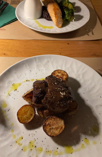 During our stay in Tirana at the beginning our round trip, we had evening dinner twice in this restaurant. The food was delicious and very good portions with high quality fresh ingredients. The interior is great and has a warm welcoming surrounding. You are sitting 'outside' as the roof is open which gives a great atmosphere. The whole team of Rossine took great care of our family and made us feel special and happy to be in Albania. Our waiter and the owner were the best hospitality guys in Tirana. We had to come back on our last evening to have dinner again here and they were so happy to see us again, and after paying the bill, we got a nice glass of Raki as a farwell...