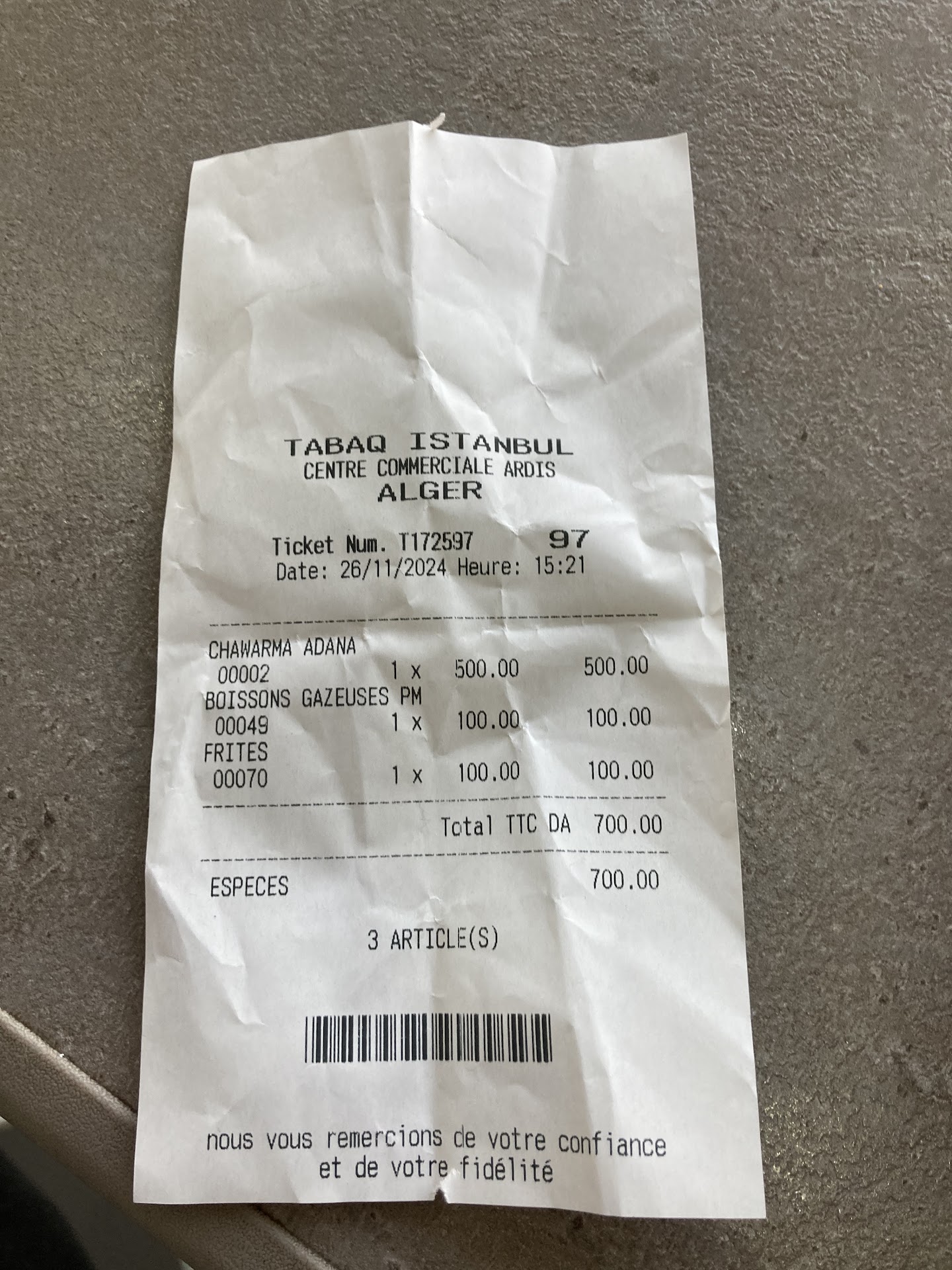 Read morePersonnel qui n'a aucune conscience professionnelle, on vient pour commander à manger on a l'impression de les embêter... sans parler de celui qui prépare le chawarma, pendant que j'attends qu'elle me fasse son sandwich lui était occupé avec son portable et bien entendu il ne sait pas lavé les mains ensuite pour aller toucher le pain libanais et faire mon sandwich. Les deux caissières de ce jour j'en parle même pas je me demande ce qu'elle faisait là d'ailleurs. Je pense que je vais postuler chez eux être payé rien faire parfois c'est bien!!!! Du coup j'ai été juste à côté ensuite à droite pour prendre un Twister c'était quand même bien mieux niveau service! Dommage pour vous Tabaq Istanbul, j'irais au concurrent a...
