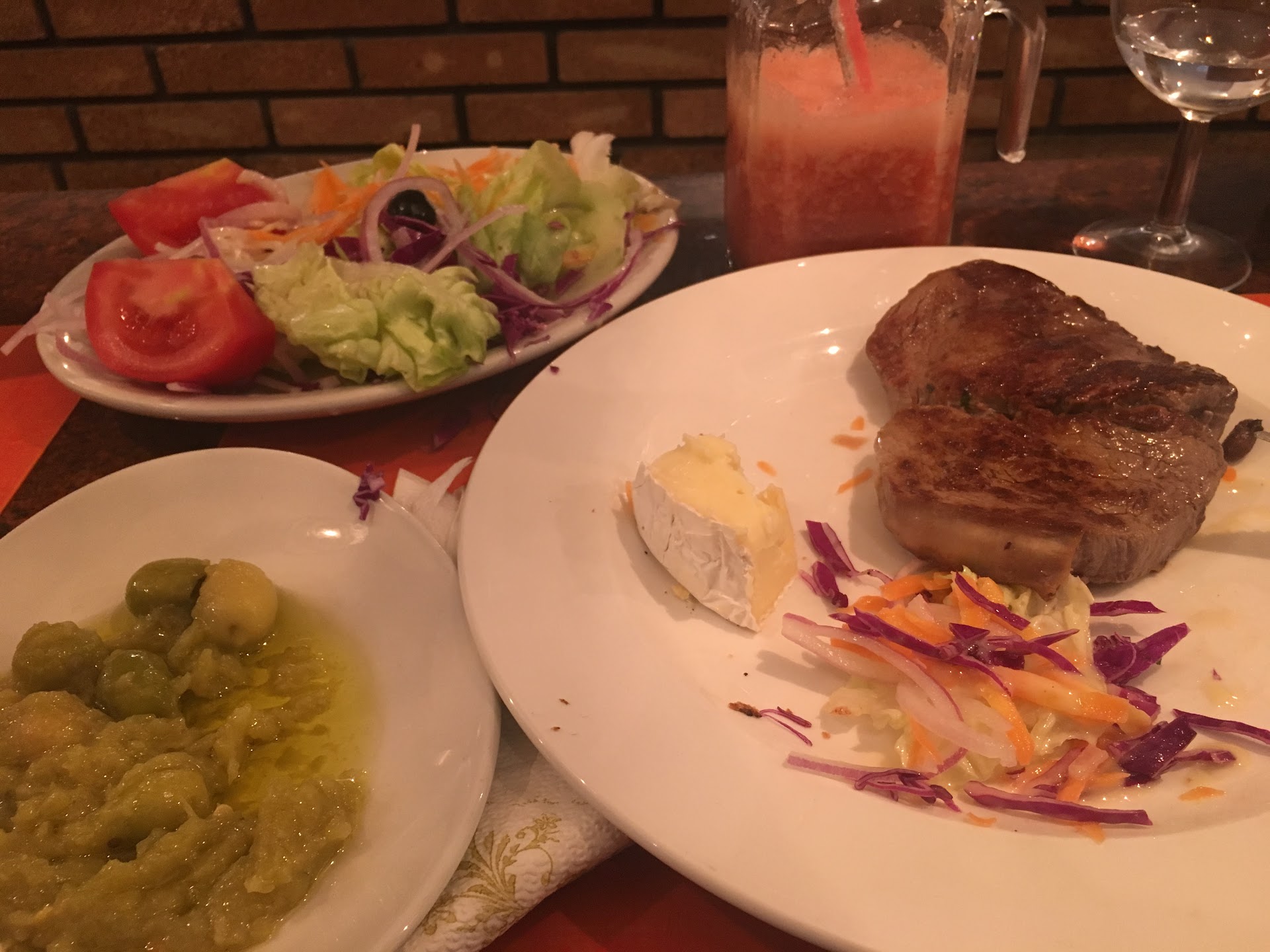 Delightful! Where to begin? If you are in the mood for not bothering with the menu and trust the chef, this is the place! As you watch them cook on the grill your choice of meat, you are served with delicious fresh fruit juices, followed by some version of baba ghanoush, greens, bread and brie cheese. It is the perfect food and perfect ambience. Pricy for...