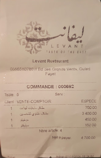 Read moreNous avons testé le restaurant oriental Levant, et notre expérience a été globalement mitigée.Les plats principaux sont bien présentés,avec des portions généreuses, ce qui est appréciable. Côté goût, c’est correct, mais sans véritable originalité ni saveur marquante. Les entrées, bien que joliment servies, étaient décevantes sur le plan gustatif. Les saveurs étaient faibles, et la soupe manquait franchement de goût. Le pain était bon, mais cela ne suffit pas à relever l’ensemble. Le service a été étonnamment lent, alors même que le restaurant était presque vide. Dans un lieu aussi petit, on s’attend à un service plus réactif. Quant aux prix, ils sont plutôt élevés par rapport à d’autres restaurants orientaux de la région qui offrent une qualité et un...