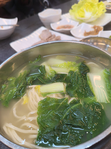 I went right after the show aired on Netflix so the lines were a bit long but went fast so the wait was not too terrible. Itโs located in a very local food market basement level, so itโs not very easy to find but other vendors direct you to the shop when you just say โnoodlesโ The auntie that took our order did not speak English so we tried to order โeverythingโ so we ended up getting the boiled pork, the incredible pancake, by far the most amazing bibimbap and auntieโs famous noodles in broth. Everything was remarkable but i have to give a special mention to the amazing noodles and the gentle but extremely flavorful broth. Definitely deserves the hype and the wait. Prices are ridiculously cheap. Worth a visit...