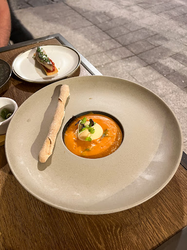 The menu instantly reminded us of our favorite tapas spot in Torremolinos, offering a selection of small, beautifully crafted dishes. 🥂 The absolute highlight for me was the Andalusian gazpacho with melon sorbet. It was so refreshing, the perfect starter to cool us down on a warm evening—I could’ve kept eating it...