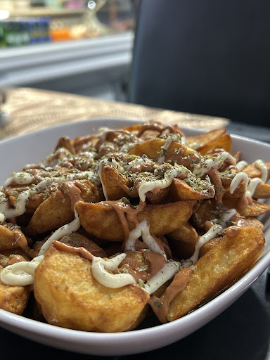 Como disculpa nos dijeron que tuvieron problemas con el aceite y tuvieron que cambiarlo. Todo perfecto. El problema aquí fue que las patatas estaban frías, secas y nos habían mentido. No es la primera vez que voy y siento que después de varios meses después de mi ultima vez aquí la situación sigue siendo la misma.