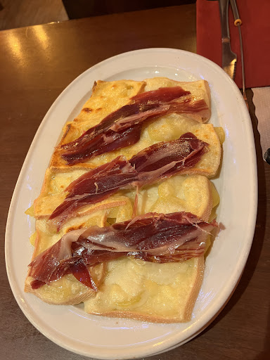 Sin embargo, nos ocurrió algo que nos incomodó bastante. Y es que, al pedir el postre (fondue de chocolate con leche y fruta), nos trajeron más bien un cuenco de chocolate. Hasta aquí sin pegas, pero nos pareció que estaba algo frío. De forma prudente le preguntamos al que parecía ser el propietario si era así o si debería estar caliente, y nos confirmó que tenía que estar caliente, y tras comprobarlo él mismo, de forma inmediata lo mandó calentar. Al rato, bajó el cocinero, que parecía estar algo molesto porque le escuchamos quejarse de que no estaba frío, que nos lo había puesto como a los demás, lo cual no entendimos, porque no nos tiene por qué gustar como a los demás, sobre todo cuando estas pagando 17 euros por un postre (como a quien le gusta la carne más o menos hecha). Después de pagar, y en el momento de irnos, el propietario nos preguntó si habíamos cenado bien, y tras contestar que “muy bien” nos preguntó de donde veníamos. Tras decirle que de Madrid, el cocinero dijo “lo sabía” y el propietario dijo, se supone que en broma “fuera de aquí”, sin en ningún momento desmentirla. Y eso, después de todo, nos hizo sentir despreciados, y nos amargó una buena cena. Nos pareció de mal gusto la broma, y bastante inadecuado que el cocinero tenga que opinar sobre cómo nos tenemos que tomar el postre que vale lo que vale. Por ello tras haber comido bien, no lo...
