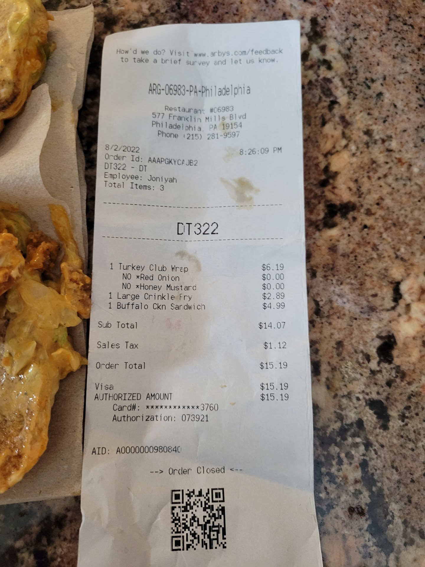Update: The experience was not good but Arby's corporation stepped up and made it a bit better. :)