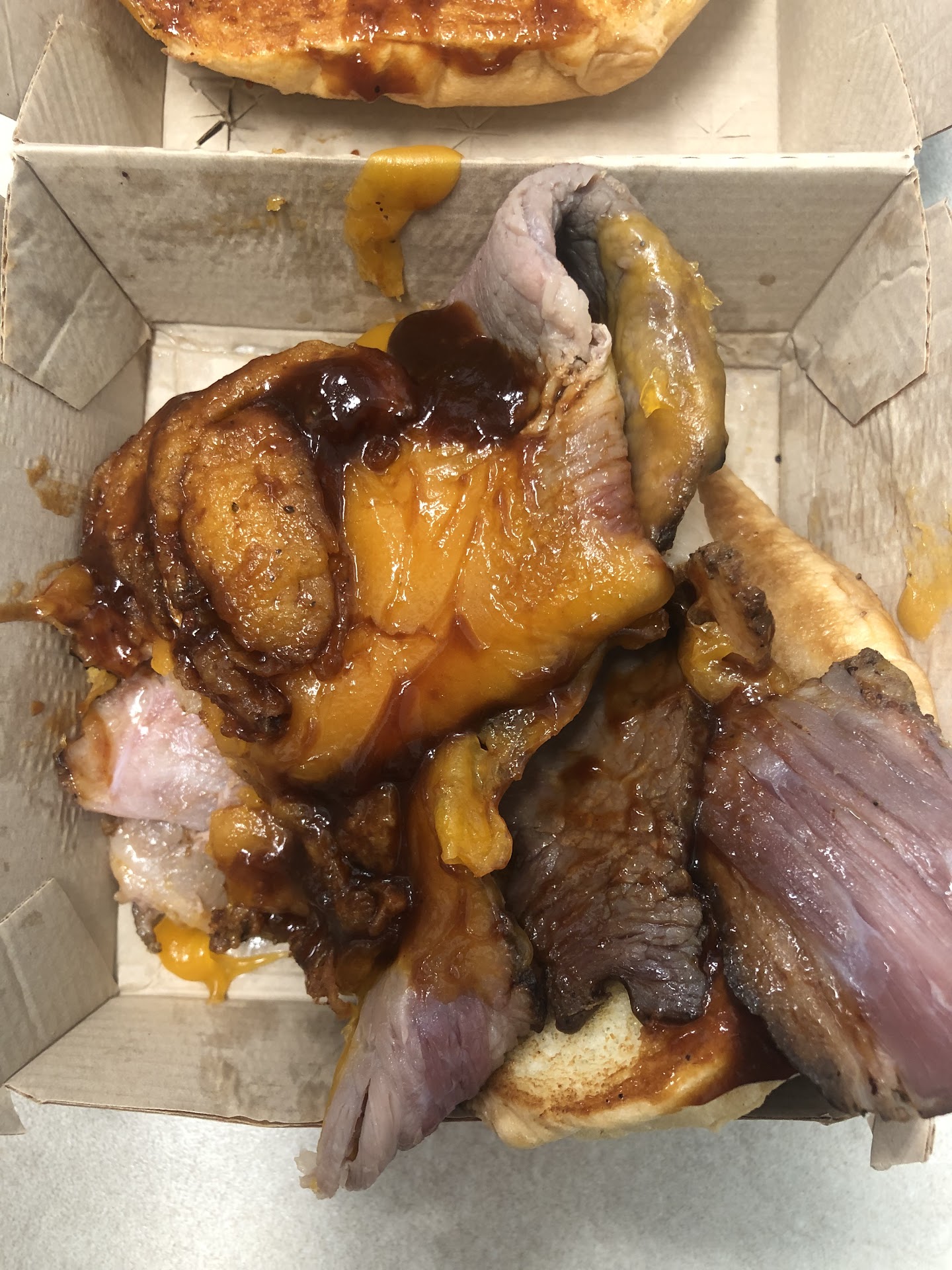 Also, as a side note, I was going to complain that my sandwich was not made correctly but I did just go and look at the website and see that the recipe has changed. It used to have brisket, gouda cheese, crispy onions, bbq sauce, and mayo. It now only has brisket, mild cheddar, crispy onions, and bbq sauce. I really wish the the employee who took my order informed me that it was different now because it’s quite awful and I would have gotten something different. This had to of been a recent change because I was there not that long ago and it was made the old way.