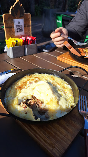 Read moreLlegamos con mí mujer de casualidad, el estacionamiento adentro es limitado a pocos autos, estuvimos en el sector exterior semicubierto, las mesas que estaban en el sector cubierto contaban con estufas de tipo exterior. El sector cubierto estaba cerrado por remodelación. Nos pedimos una limonada que estaba realmente muy rica y eso que no soy tan amante del limón, de entrada probamos unas croquetas de búfalo con un puré de papas con especias (las croquetas estaban picantes, un punto que no nos advirtieron al recomendarlas) pero estaban buenas. Luego nos trajeron unos cortes de marucha a la parrilla la cual la sirven en una tabla con un acompañamiento de repollos cortados en juliana y zanahorias rallada condimentados con una salsita. Aparte el corte de carne viene con una porción de papas fritas rústicas y una ensalada de lechuga repollada, tomates cherry y portobellos. Este plato era para compartir, de porción abundante. Postre no pedimos. En su carta tiene variedad de platos, pero los cortes de parrilla no son aquellos que uno está acostumbrado a pedir. Son algunos platos puntuales y selectos, si imaginan ir por un choripan o morcilla, o pollo a la parrilla este no es el lugar. Es un lugar que cuenta con algunas variedades de hamburguesas, pizzas, empanadas fritas o al horno de barro, variedad de bebidas y tragos, cuenta con happy hour hasta las 22hs. La atención 10 puntos, siempre atentos, consultan el punto en que uno quiere la carne y son muy serviciales. Recomendable para ir con tu pareja o grupo de amigos a tomar unos tragos o cerveza tirada...