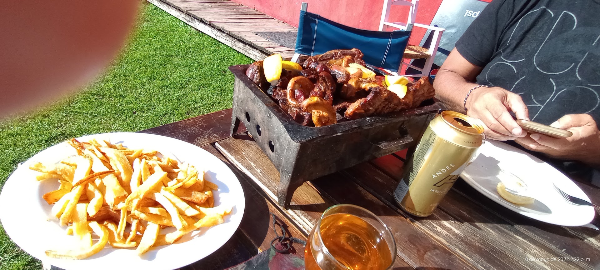 La comida, lo más importante.. Chorizos quemados, provoleta fría, lechuga mal lavada, bife de chorizo duro y pasado.