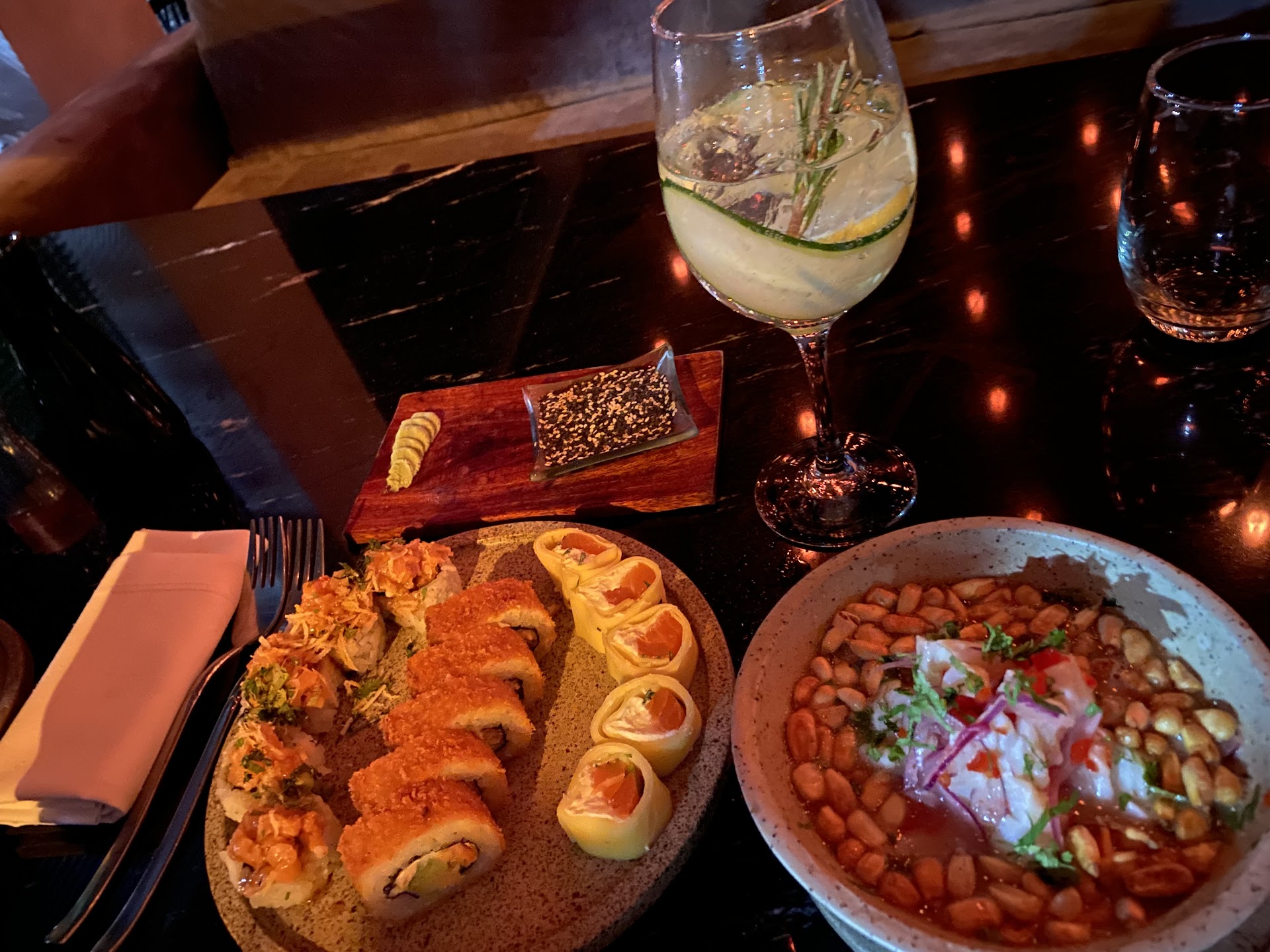 Read moreFuimos a comer un viernes por la noche con la idea de comer en un lugar de sushi bueno, sacrificando pagar un poco mas. Lamentablemente, a pesar de que el lugar es muy lindo, lo primero que notamos es que la carta de sushi tiene casi en su totalidad piezas de langostinos fritos panados, muy poca variedad de mariscos y pescados.