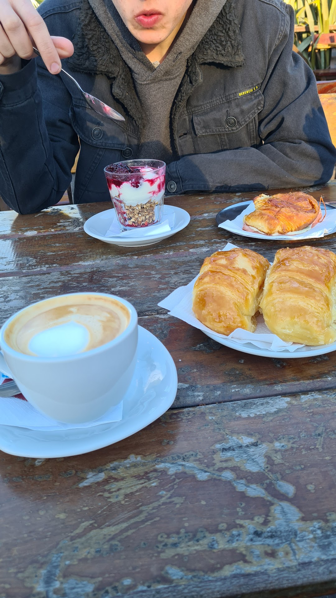 Comida: si bien fue una merienda improvisada y rapida, el café estaba muy bien, las medialunas perfectas, no estaban secas ni desabridas y esto viene con un vaso de jugo de naranja. Por otro lado el yogurt con frutos rojos es abundante, con buenas cantidades de todo (yogurt, granola y frutos rojos).
