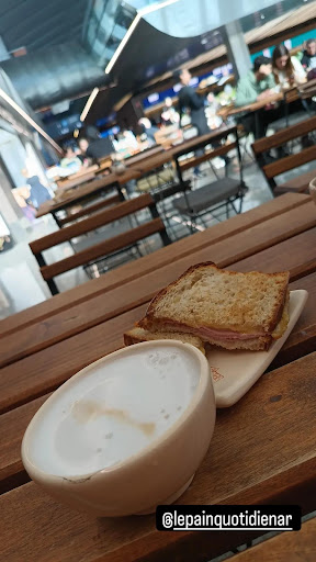 Read moreLe Pain Quotidien es un lugar que nos gusta mucho y ya hemos ido con mi marido a diferentes sucursales. La atención es siempre muy buena como también la comida siempre deliciosa. Desafortunadamente es la segunda vez que vamos a la sucursal del Aeropuerto Ezeiza y la experiencia no fue tan feliz. En ambas oportunidades el tiempo de atención fue demorado y considerando que es un aeropuerto nos parece que es un punto que merece una revisión. A pesar de ser demorada, en esta última oportunidad que fue hoy 28 de febrero, la moza que nos atendió fue amable hasta que reclamamos que el Croque Monsieur Vegetariano vino con fiambre. Solo nos dimos cuenta al dividir el sandwich al medio para compartir, intentamos primero retirar el fiambre pero resultó complicado ya que estaba pegado al queso. Reclamamos y la respuesta fue que ya habiamos comido la mitad y no fue exactamente asi, el plato estaba desordenado si pero producto de dividir porque lo ibamos a compartir, mi marido habia comido un bocado y cuando yo fui a comer vi el fiambre y ahi llamamos a la moza. Ella ofreció cambiarlo pero ya la demora habia sido tanta y ya era hora del check in que nos vimos obligados a rechazar el ofrecimiento.Solo cobraron las bebidas,la cesta de pan y un pain au chocolat y no el croque monsieur vegetariano que vino cambiado por una version no vegetariana, pero la atención cambió notablemente volviendose ríspida.